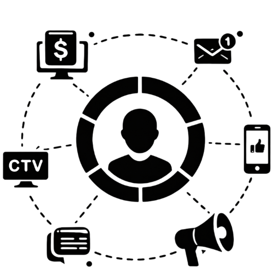 Paid social, display, CTV, email, and offline channels